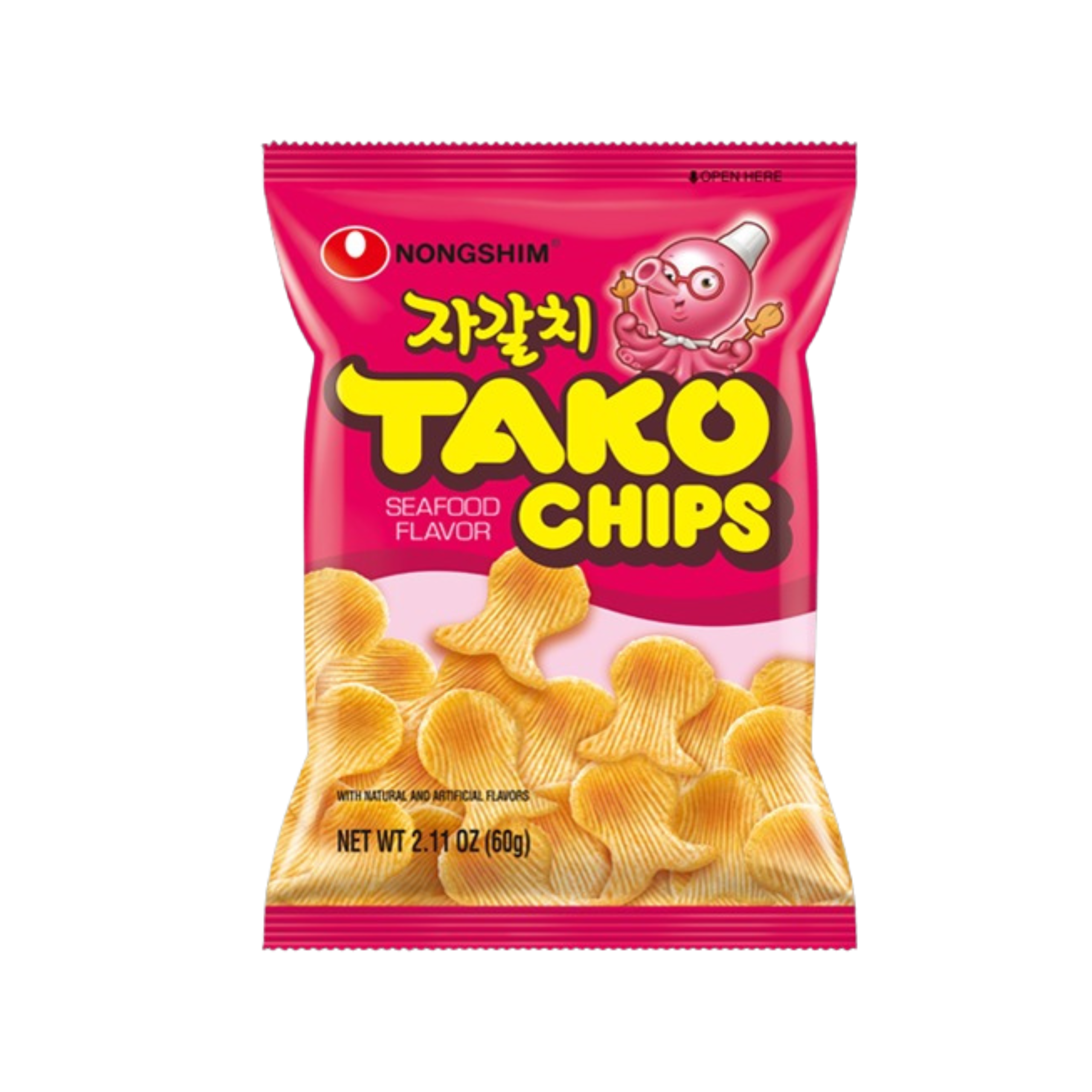 Wheat Flour, Corn Starch, Rice Bran Oil, Minced Corvina, Palm Oil, Rice Flour, Sugar, Anchovy Extract (Powdered), Artificial Flavor, Beef Bone Extract, Black Pepper (Powdered), Dextrose, D-Sorbitol, Fish Paste (Cutlassfish, Pollock, D-Sorbitol, Sodium Phosphates), Garlic (Powdered), Gum Arabic, Hydrolyzed Soy Protein, Maltodextrin, Natural Flavors, Octopus (Powdered), Salt, Shrimp (Powdered), Soy Sauce (Soy, Wheat, Salt), Tapioca Starch, Whey (Powdered), Yeast Extract.