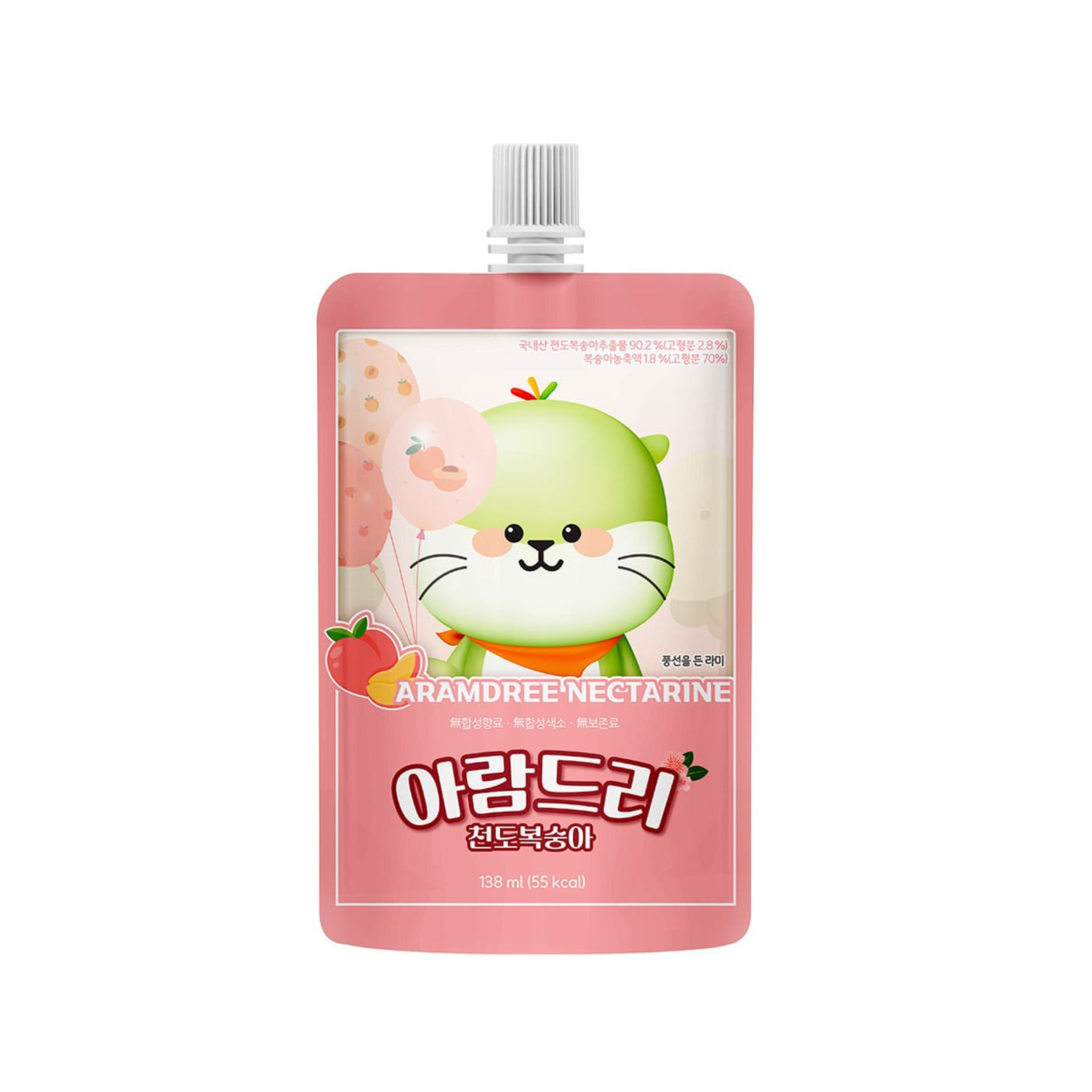 Enjoy the refreshing sweetness of Korean-grown Cheondo peaches (nectarines) with Aramdree Nectarine Drink. Packed in a fun, squeezable pouch with an adorable character design, this fruit drink is a healthy and delicious snack choice for kids and adults alike.