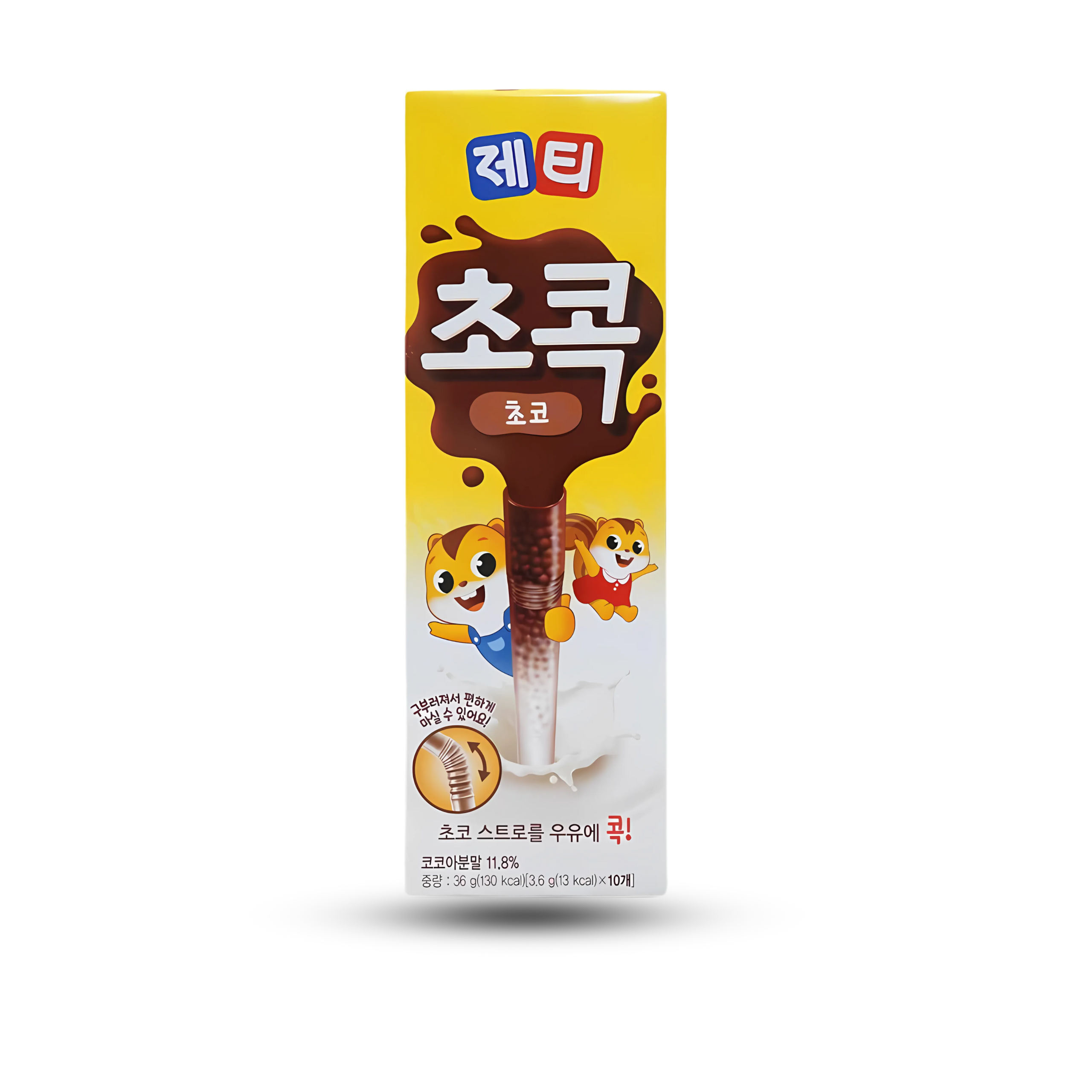 The exact list of ingredients is not visible on the packaging in the image, but typical chocolate-flavored straws like this may contain the following: